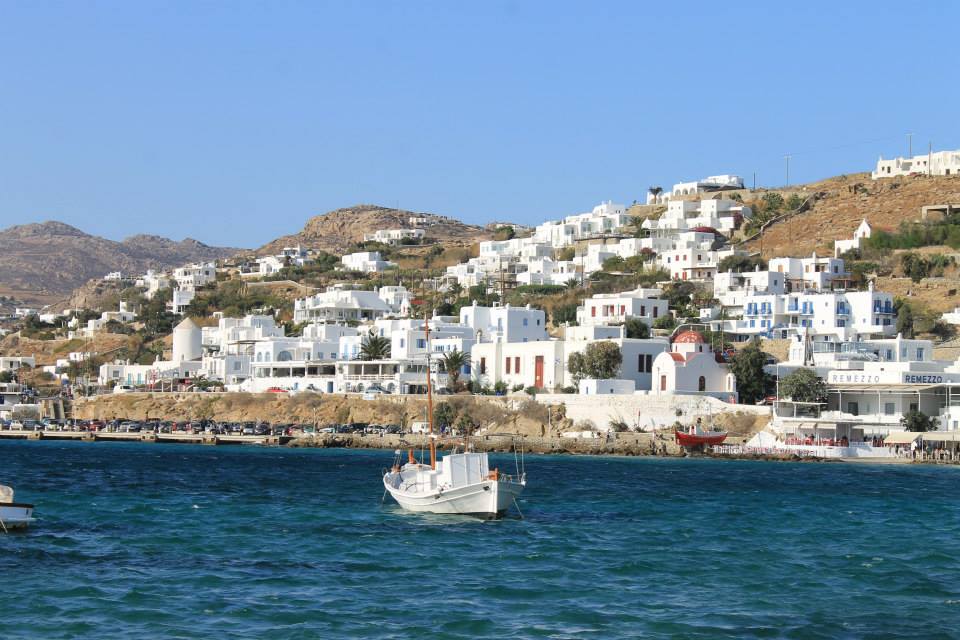 It’s a labyrinth of narrow walkways with little shops and artist studios on both sides. The higher stories of the building were condos or apartments with a variety of bright colored balconies and flowers hanging down. The island looked just as I expected but it was a little dirty. That was disappointing but fairly easy to look past. We walked all through little Venice and ended up at the windmills. This is really cool. There are 6 old windmill structures standing but are now non-functional. Its on top of a hill so it provides beautiful views of the sea and the island. We did a little more walking and shopping. I stumbled upon a local artist that makes and paints ceramics. She does beautiful work so I went in to take a look around. She was a very nice lady (as were all the locals btw) and we talked about many of her pieces. We ended up purchasing a few to bring home. We have found many wonderful treasures on this trip that are so meaningful. Every time I use the dish I purchased here I will think of the artist and our conversations. We strolled back toward the shore to find a restaurant to enjoy some authentic greek food before leaving. We found a perfect spot right on the water at the main drag which provided some great people watching ;). We enjoyed greek beer and gyros - the perfect ending to another beautiful day in the Mediterranean.