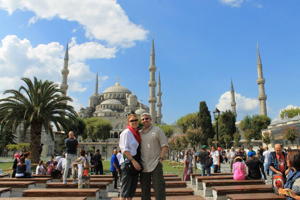 When I booked this trip my only hesitation was visiting Turkey. Istanbul is the only city in the world that spans two continents - Europe and Asia. I had images in my head of a very dirty, crowded, violent city. Needless to say, my expectations were very low and I felt very guarded when disembarking and entering Istanbul. We hired a private guide to take us through the city (no car, just walking). The plan was for him to meet us at 8:30a at the port. We were able to get off the ship by 15 after 8 and our guide was no where to be found. We waited about 20 minutes before getting frustrated. By 8:45a I decided to go back to our cabin to look up his number. By the time I got back to Roy the guide had appeared - not a great start but at least he showed up. His name is Borat and he seemed a little stand offish at first. I was hesitant… not only because of the image I had of Istanbul but now our guide seemed a little cold so my expectations of this being a good day were even lower.