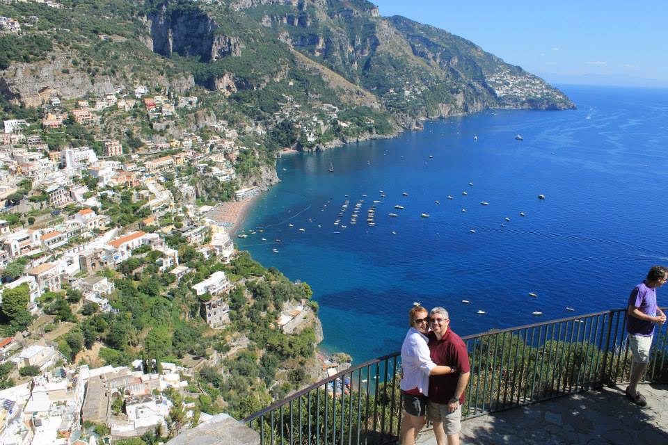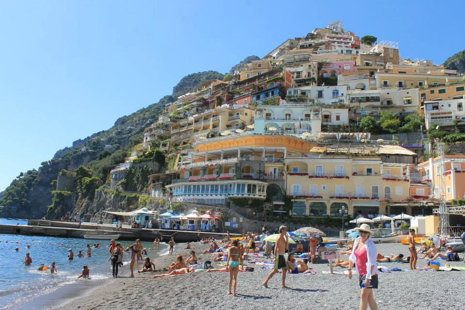 We left Sorrento and drove along the Amalfi Coast to the little town of Positano. This was similar to Sorrento but much smaller and had a beach. We walked down a series of hills and stairs to get to the beach below. The "beach" was clearly man-made as it consisted of dirt/sand and small river rock type rocks. It was CRAZY hot at the beach. It's kind of in a cove so it doesn’t get the breeze. And I reached down to pick up some rocks and found that they were insane hot! The heat just radiates off of them making an area that is already hot even hotter!!!! But the people apparently don’t mind because the place was packed. The views were spectacular, there were many yachts and sailboats along the coast. It was too hot for us so we headed back up… and up… and up… so much for a relaxing day today. We pretty much walked all day! My legs and feet are exhausted. But it was totally worth it.