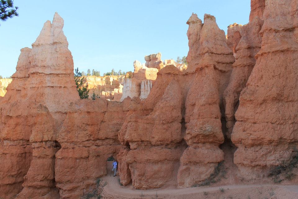 The next day we went back to Zion for some hiking. You have to park at the visitors center and take a shuttle through the park. This is a very popular park. We decided to stop at the Overview trail before going to the visitors center. This is a quick 1.5 mile round trip hike to a gorgeous overlook into the park. You can see the long windy road down into the canyon. We spent some time taking it all in then headed down the road in the jeep. We took the top off the jeep so we could really enjoy the drive. We took the shuttle to the lodge and walked to the Emerald Pools trail. It was a hot day so there wasn't much to see at the pools. We decided to follow the trail around to the Grotto bus stop about 1.5 miles ahead. From here we caught the shuttle to the Temple of Sinawa and walked the riverside hike to the Narrows. We stopped for a picnic on a rock along the way. The Narrows is the entry point to a huge trail of narrow canyons walking in the river. It's one of those things I would have loved to have done but realized my body wasn't going to let me. The walk back to the bus stop was tough. It was 114 degrees out and this was another 2 mile hike round trip. I may have pushed too hard. It was time to go. We saw a lot of Zion and had a great day. We set off to Bryce Canyon. The drive to Bryce started our journey on Scenic Byway 12 - wow! 'nuff said. I think we saw more beautiful sights while driving than while hiking this trip.